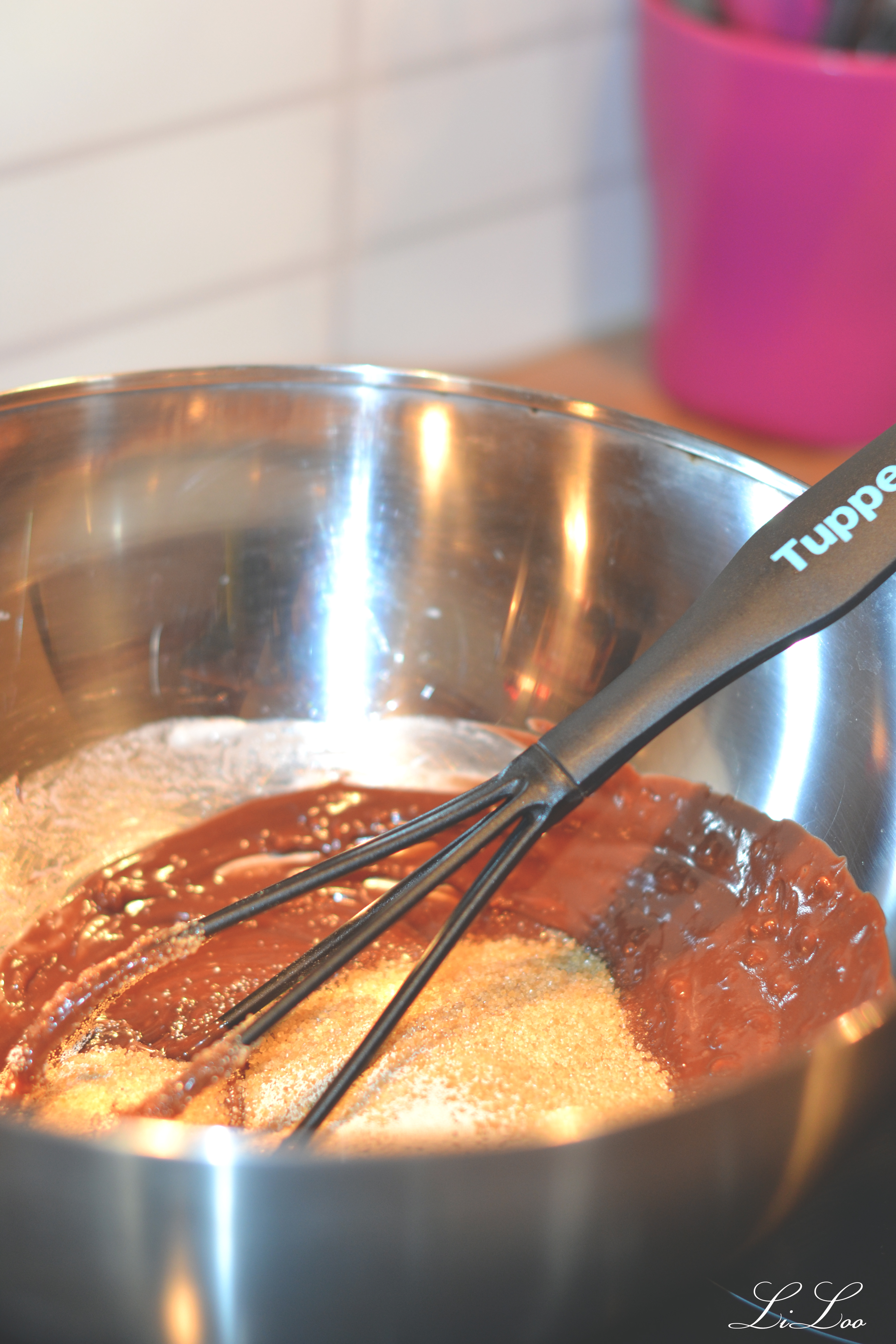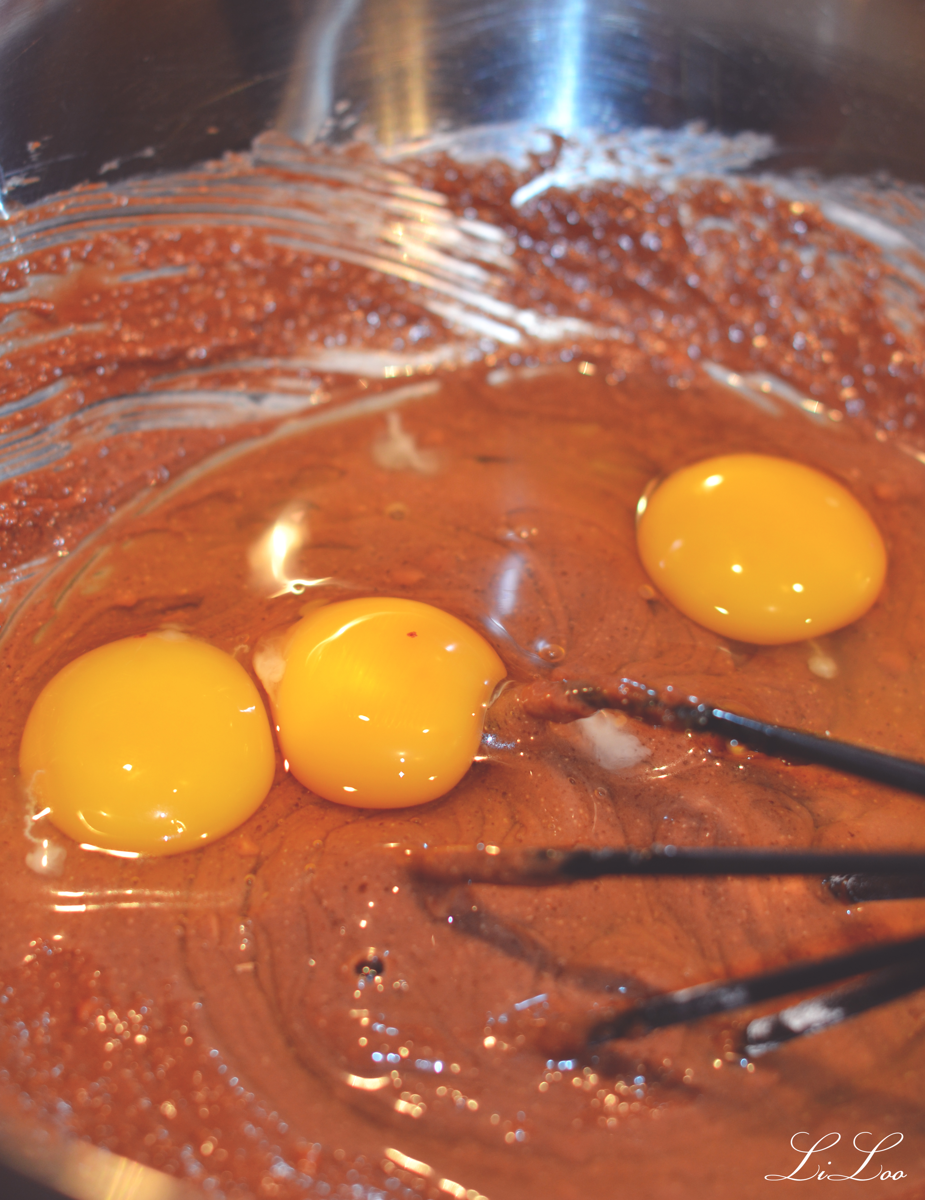 4 – ajoutez les œufs et battez au fouet.