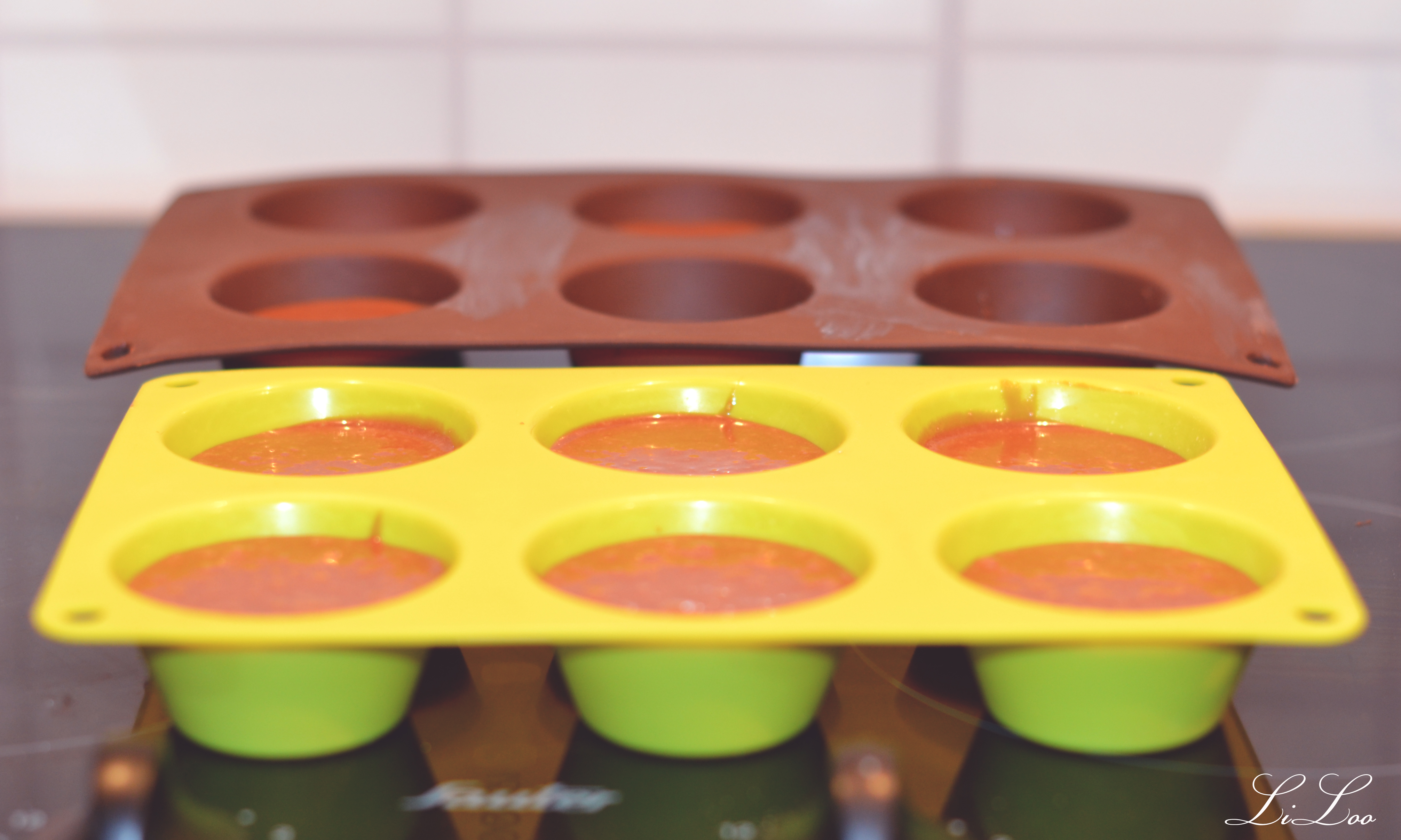 5 – Répartir la préparation des moules à muffins et mettre au four 20 min environ.