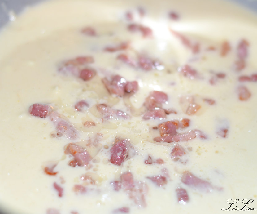 4 – Rajouter les lardons et mélanger.