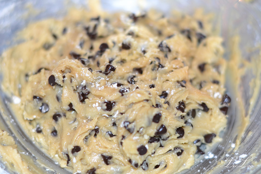 6 – Mettre une noisette de Nutella au milieu et refermer avec une nouvelle couche de pâte à cookie.
